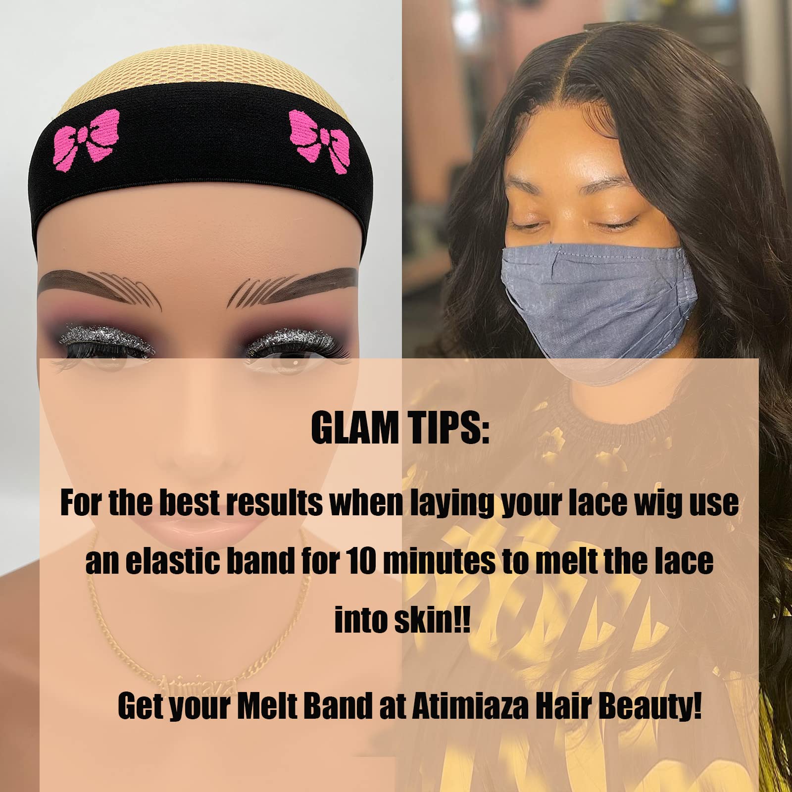 Atimiaza 2 Pcs Elastic Bands for Wig Lace Melting Bow Tie Band Edge Wrap to Lay Edges Pack of 2