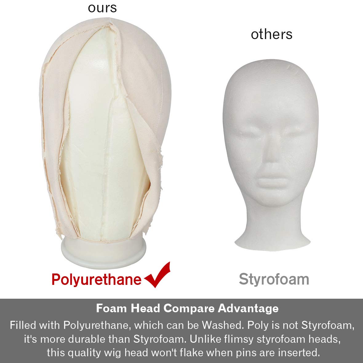 Leeven 21"24" Poly Canvas Block Wig Head Hair practice Manikin Canvas Head for MakingDryingStylin...