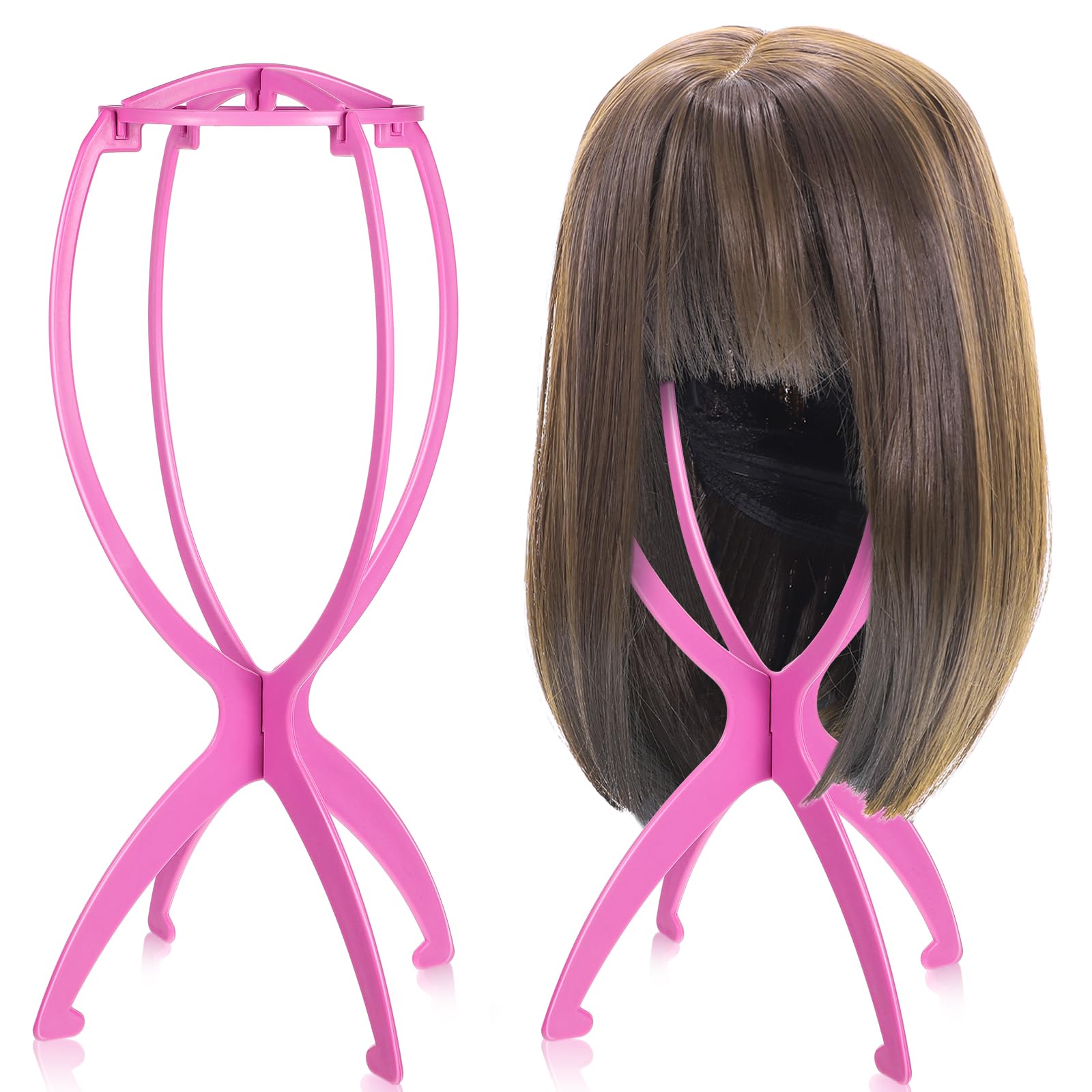obeoby Wig Stand Portable Wig Holder Wig Head Stand for All Wigs Travel Wig pink 2pack